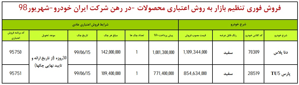 به گزارش عصر ایران طرح فوری محصولات ایران خودرو از ساعت ۱۱ چهارشنبه ۶ شهریور در وبسایت فروش ایران خودرو به نشانی esale.ikco.ir آغاز خواهد شد.در این طرح خودروهای "دنا پلاس" و "پژو پارس" به صورت اقساطی به فروش می رسد.