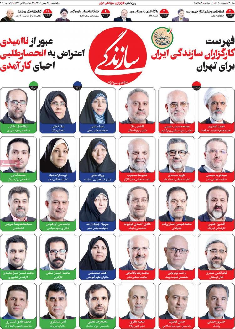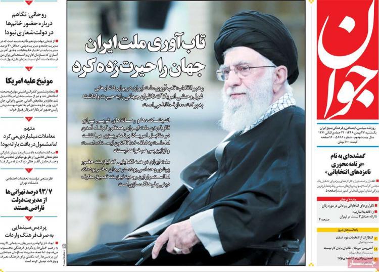عناوین روزنامه های سیاسی - یکشنیه یست و هفتم بهمن ۱۳۹۸ عناوین روزنامه های سیاسی - یکشنیه یست و هفتم بهمن ۱۳۹۸jaaar.com176۵۰%