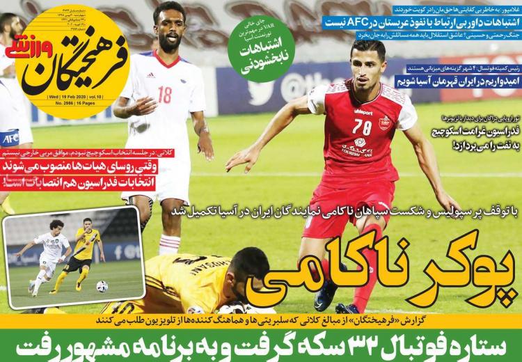 عناوین روزنامه های ورزشی - چهارشنبه سی ام بهمن ۱۳۹۸ عناوین روزنامه های ورزشی - چهارشنبه سی ام بهمن ۱۳۹۸jaaar.com101۵۰%