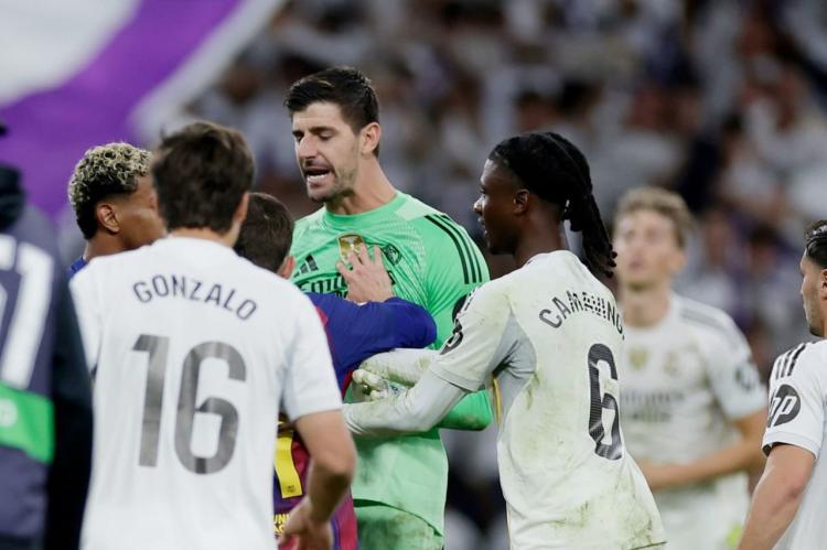 اما ماجرا هنوز تمام نشده بود. در لحظه خداحافظی، کورتوا و لامین یامال درگیر گفتوگویی داغ شدند که ناگهان به درگیری تازهای انجامید. حتی رودیگر و رافینیا، که با لباس شخصی کنار زمین بودند، وارد ماجرا شدند.